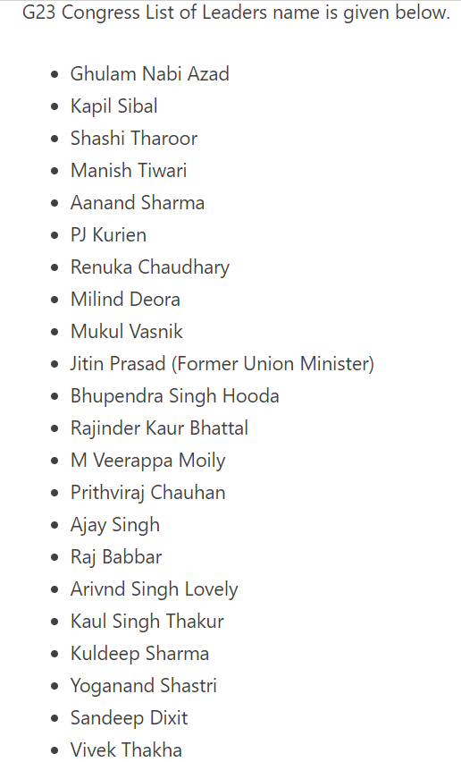 The leader of the G-23 party of congress, is @ghulamnazad and members are many others who have been union ministers, chief ministers or the party's state unit chiefs.