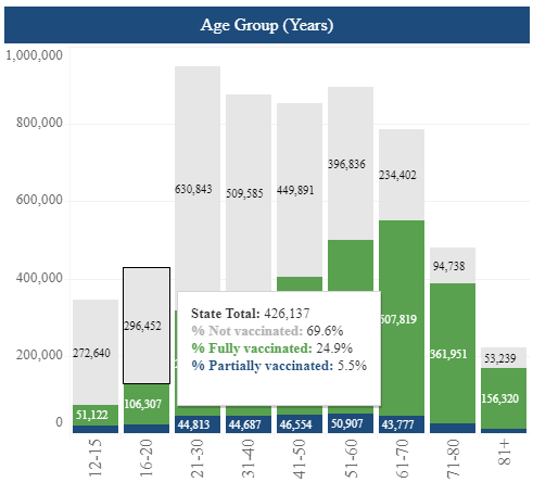 Just under 15% of those ages 12-15 are fully vax'd. And only 25% of those ages 16-20 are fully vax'd.