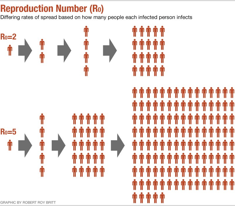 If you do the math, those 2 cases would become 10 new cases after two weeks.