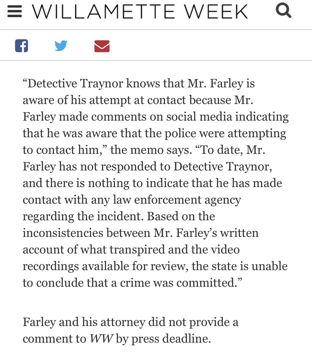 Portland antifa journalist @DonovanFarley claimed he was beaten by police for “doing his job.” A damning investigation examining video found his claims “demonstrably inaccurate.”Even the DA declined to prosecute the officer. wweek.com/news/courts/20…