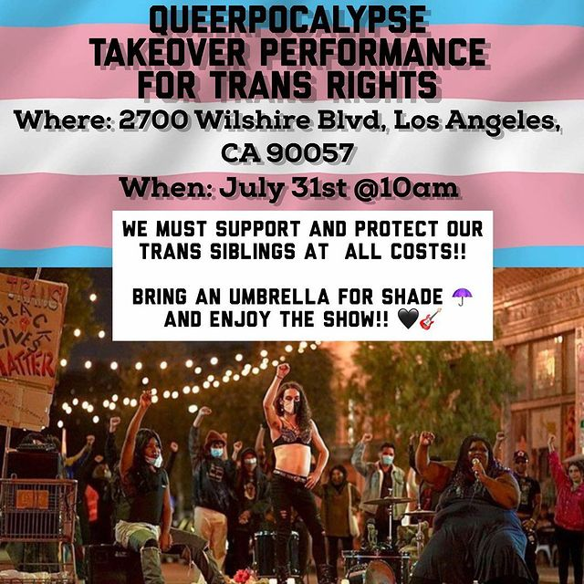 Video of the trans BLM band performing today outside the Wi Spa in Los Angeles. The group is performing to “support and protect” trans people after the spa was recently protested over an alleged penis exposure incident in the women’s area.