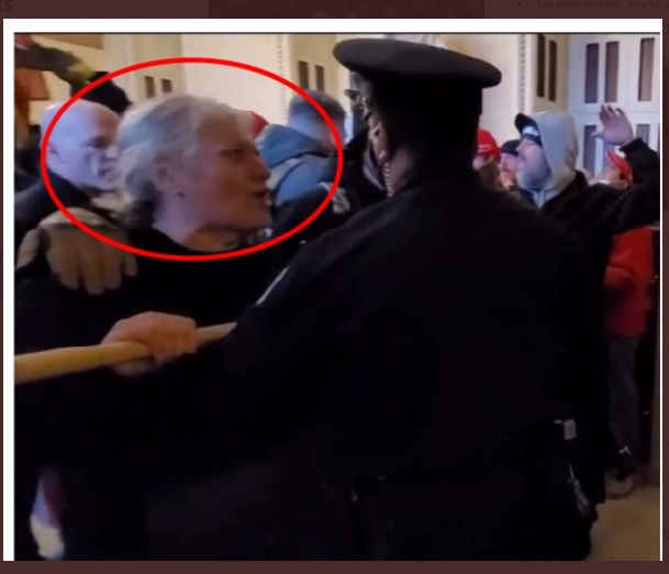 Feds allege Audrey Southard-Rumsey also said "Tell Pelosi we are coming for that b**" before shoving police sgt & pushing him into door w/ flagpole ("felt like he was being trampled")