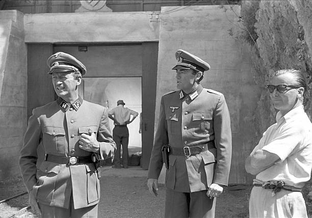 J. Lee Thompson with his stars David Niven & Gregory Peck on the set of The Guns of Navarone, for which Thompson received an #Oscar nomination for Best Director.