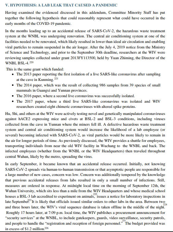 In an update to their investigative report House Foreign Affairs Committee Republicans have concluded that COVID-19 is the result of a lab leak by a “preponderance of the evidence”