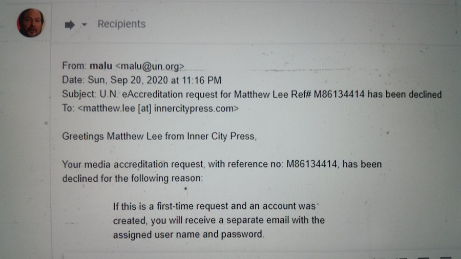 Inner City Press has asked in writing, "Amid reports that NYC will require proof of vax for indoor events, =\with enforcement mid-Sept, & in light of UN saying "honor system" in person #UNGA high level week Sept 21, will that be canceled or proof of vax required?