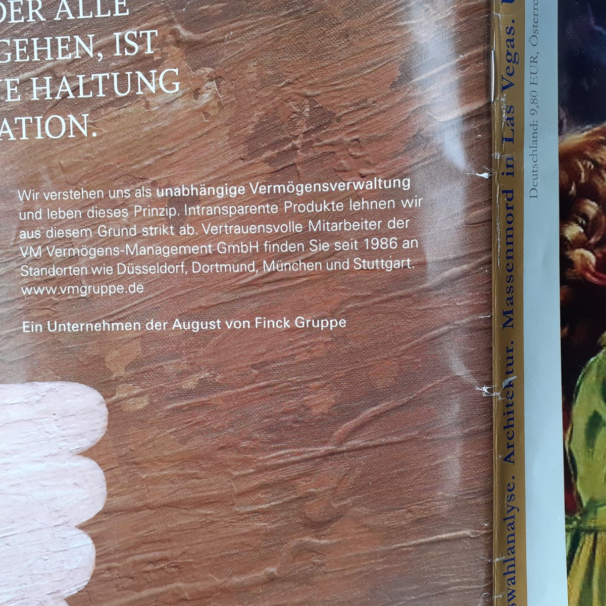 Es scheint also von Vorteil zu sein, wenn das Finck-Imperium Freunde in den Finanzministerien hat. Aber auch das ist noch nicht alles. Ganzseitige VM-Werbeanzeigen finden sich regelmäßig auf der Rückseite der demokratie- und steuerfeindlichen "eigentümlich frei".