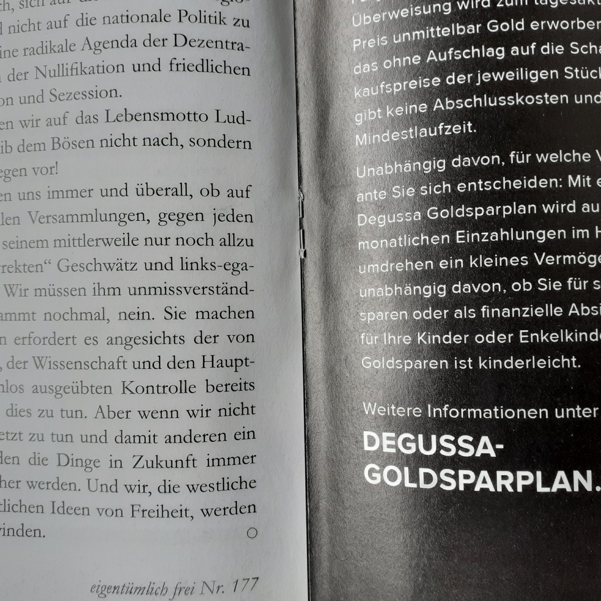 Thorsten Polleit, seit 2012 Chefökonom der zur Finck-Gruppe zählenden Degussa Goldhandel und seit dem gleichen Jahr Vorsitzender des in den Räumlichkeiten von Degussa Goldhandel ansässigen Mises-Institus, ist Kolumnist mit weit über einhundert Artikeln in "eigentümlich frei".