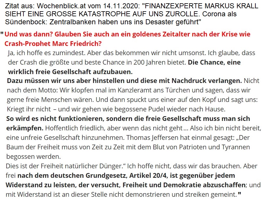Und leitender Geschäftsführer des Finck-Unternehmens Degussa Goldhandel ist Markus Krall, der für einen (notfalls blutigen) Umsturz eintritt, um das Allgemeine Wahlrecht abzuschaffen.