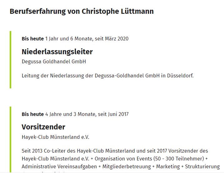 Degussa GH ist mit Polleit, Krall, Mises-Institut eine ideologische Gruppierung. Leiter der Düsseldorfer Niederlassung ist Christophe Lüttmann, Vorsitzender des Hayek-Clubs Münsterland