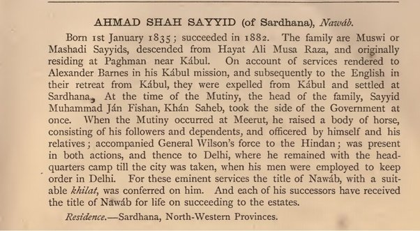 जब 1857–58 में "स्वतंत्रता का पहला युद्ध" शुरू हुआ, तो उसने झांसी की रानी लक्ष्मी बाई और उनकी सेना के खिलाफ ब्रिटिश सेना के साथ लड़ाई लड़ी।