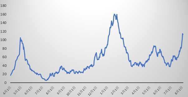 7月最初の週から倍増。