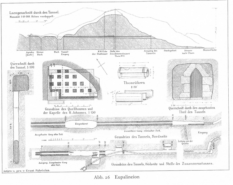 No hay📜de la época sobre sus cálculos, pero se da validez a la hipótesis que hizo 500 años + tarde el ing. Herón de Alejandría, que creía que Eupalino rodeó la montaña en escalones ortogonales, y luego sumó separada y algebraicamente las distancias en una dirección y la otra.
