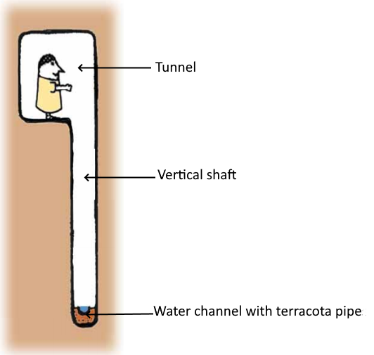 Una vez Eupalino tuvo definida la dirección (mediante un par de ángulos), los 2 grupos se pusieron a trabajar, cada uno por un extremo y al mismo ritmo.