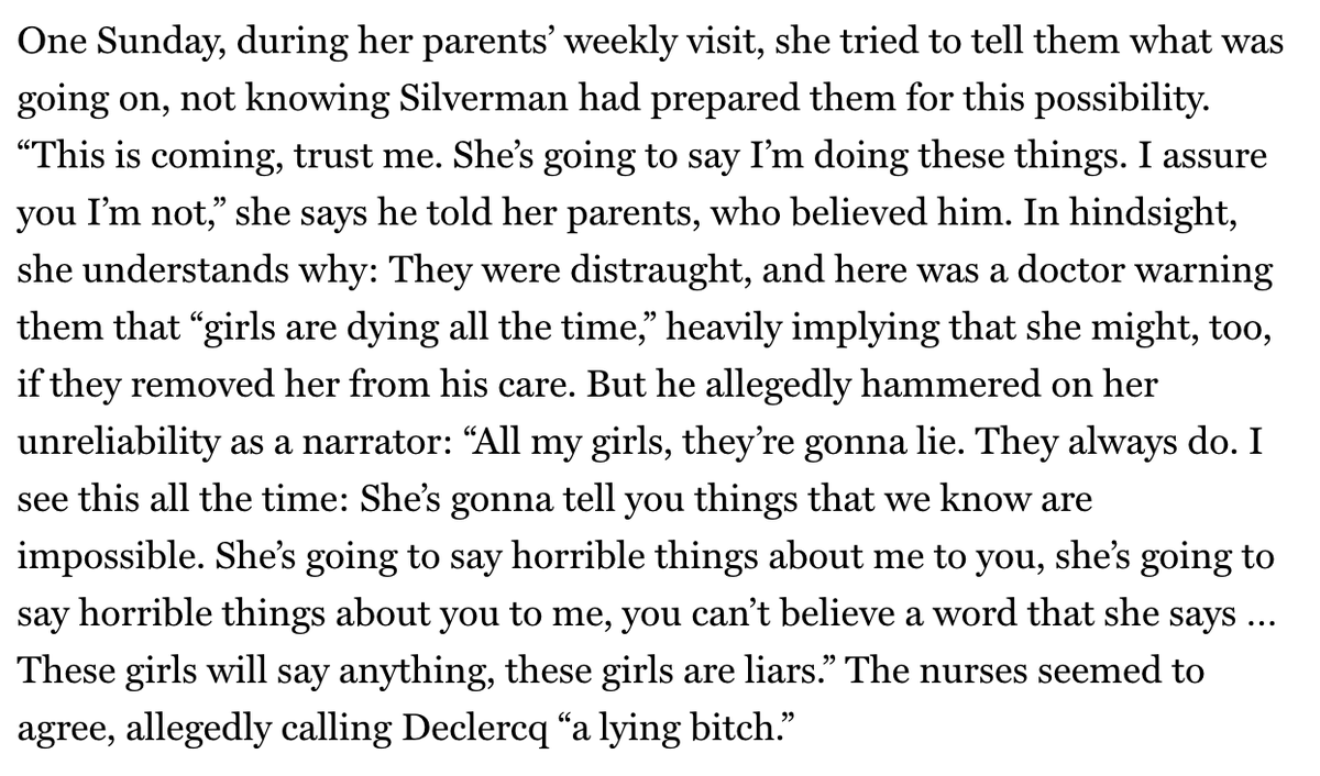 Last week I talked about how sexual abuse can happen when kids aren't believed by parents and adults but purported authorities are automatically believed. This is what I mean. thecut.com/2021/07/dr-jos…