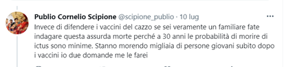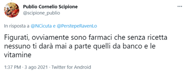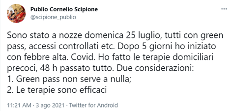 Vi risparmio il tweet in cui il personaggio fa il tampone molecolare lunedì (dopo inizio della febbre) e scopre la positività mercoledì (praticamente già guarito).