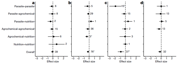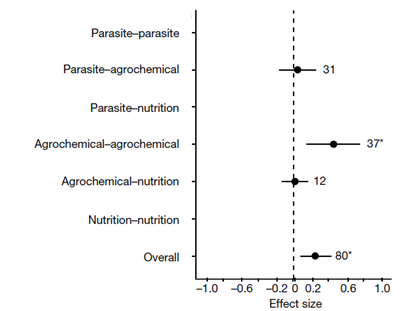 Really happy to present our new paper published in @Nature . We use meta-analysis to show that interactions between agrochemicals, poor nutrition and parasites interact synergistically to increase bee mortality. Start of thread (1/13). nature.com/articles/s4158…