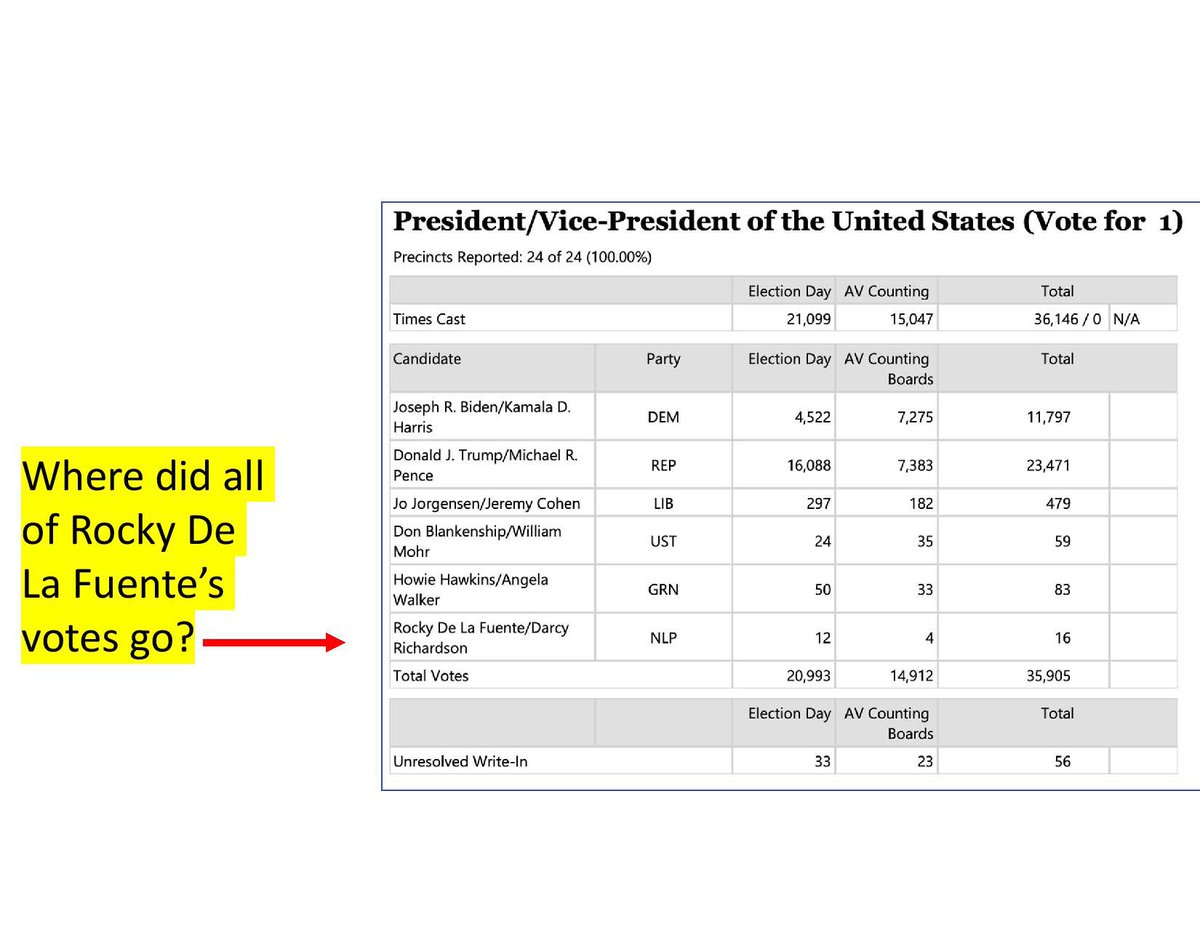 2. On Nov 3, 2020, Rocky De La Fuente led with 8,883 votes. Based on forensic study of Antrim EMS, this aberration is consistent with subversion employed operationally by a malicious actor in a misconfigured mode, shifting votes to National Law Party. Final results 👇
