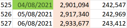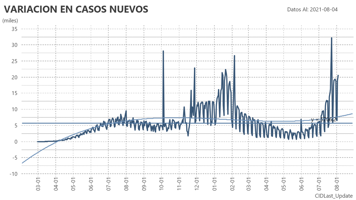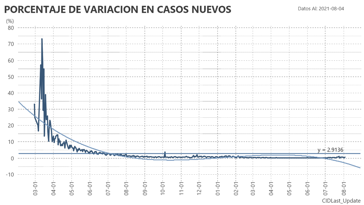 El porcentaje de aumento de casos contra el día anterior fue del 0.72%. Se llega hoy a 2.9 millones de casos nuevos, no el 5 de agosto. Se llegará a 3 millones el 11 de agosto