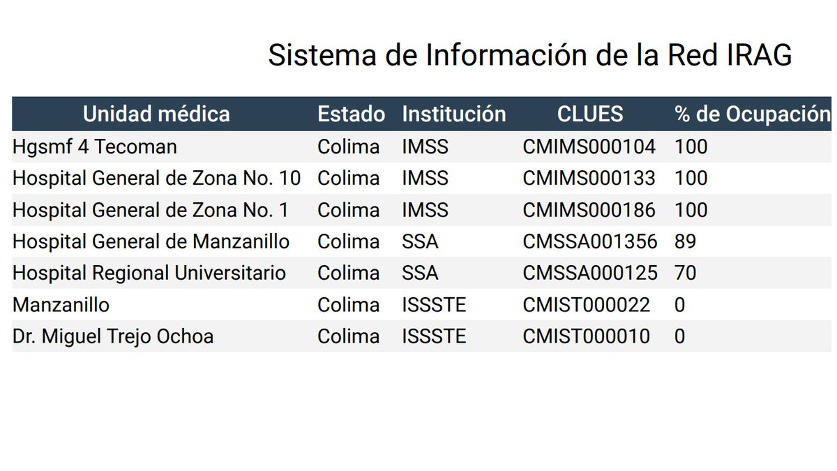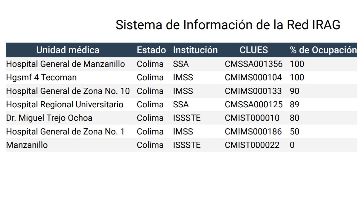 Al 31 de agosto, en el Estado de Colima habían 125 hospitalizados: