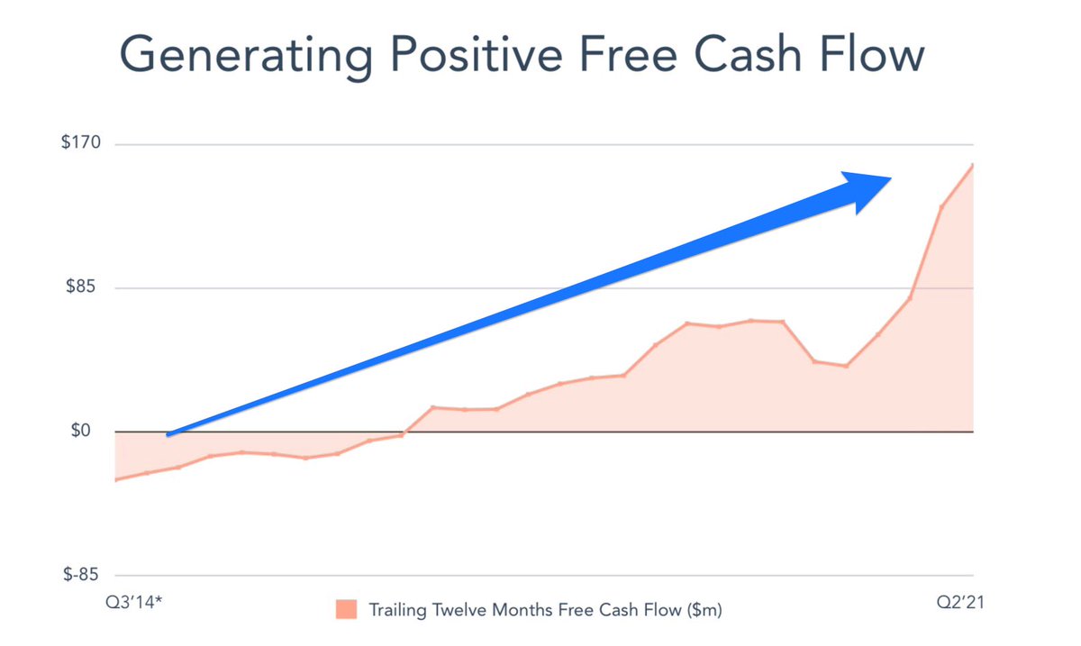 β‘οΈ Leading to $HUBS rising Free Cash Flow (TTM FCF) over time. π