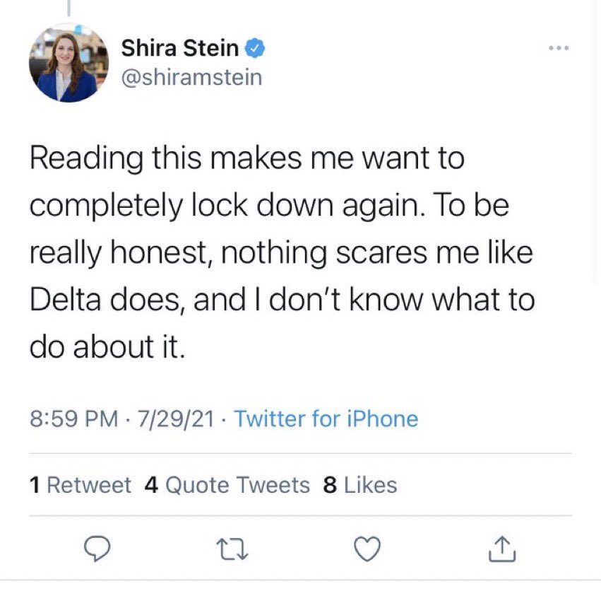 This is exactly right. Do I love the delta situation as the mother of a newborn? Not particularly. We all need friends (thanks @kgcarney) who we can call who can talk us down from irrational ledges with data and facts.