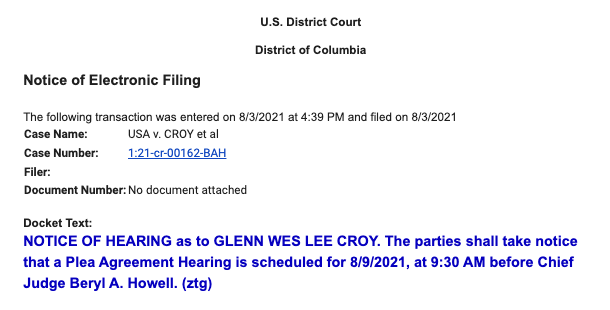 Catching up on filings from yesterday in the meantime, three more plea hearings were added to the calendar for Jan. 6 defendants: