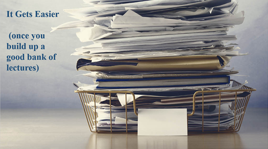 In my first 4 years I had 18 courses, in 4 Unis on 3 continents. This year I had no new lectures – and I could get research done EVEN IN A PANDEMIC. It might take 12-15 hours to write a new lecture, v 1-2 to update one.