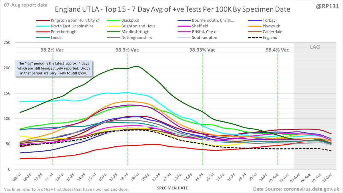 Updated (07-Aug) table of top 30 MSOAs (by rate) based on latest numbers in today's report.
