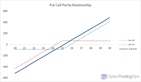 Put-call parity is the idea that buying 1 call & shorting 1 put creates the same risk payoff as owning 1 underlying share.