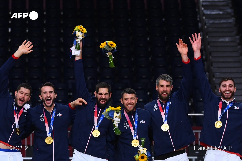 Les sports collectifs tricolores ont brillé aux JO de #Tokyo2020 : après l’argent des basketteurs et le bronze des basketteuses, les handballeurs et les volleyeurs ont décroché l’or lors des finales olympiques #AFP 2/5