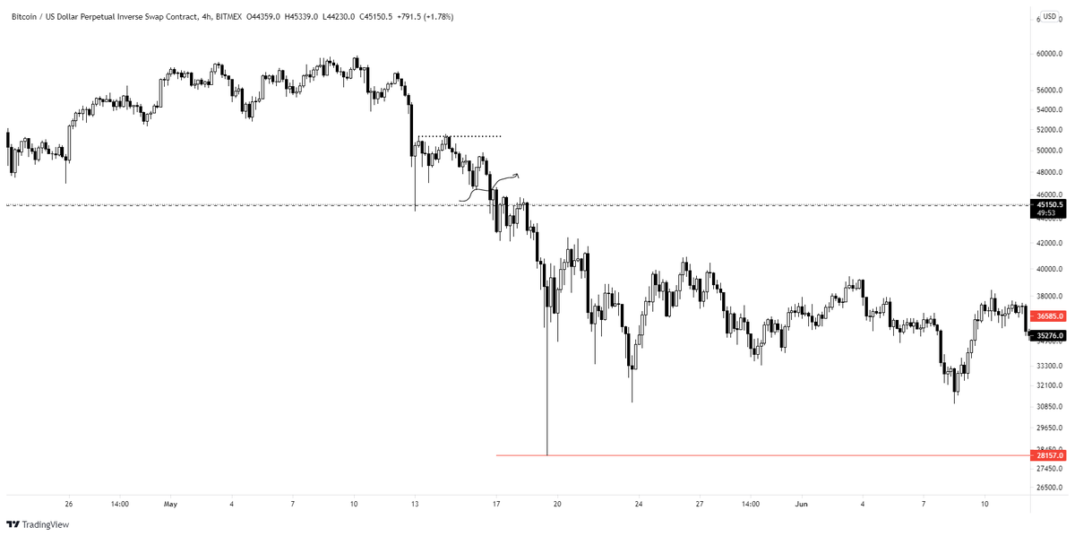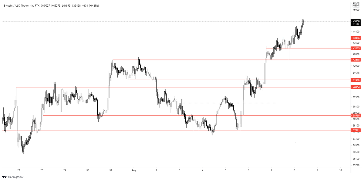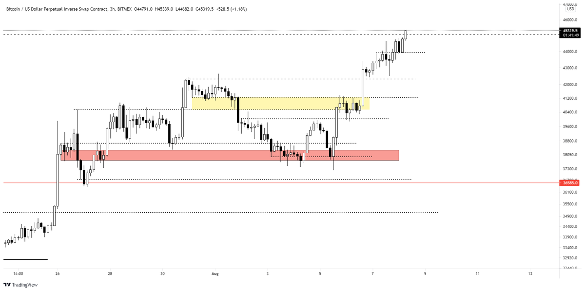 HTF'de kırılım gelen bölgeye 4H'ta bakınca ilk gözüme çarpan seviye 46500'lerdeki S/R Flip yapısı.