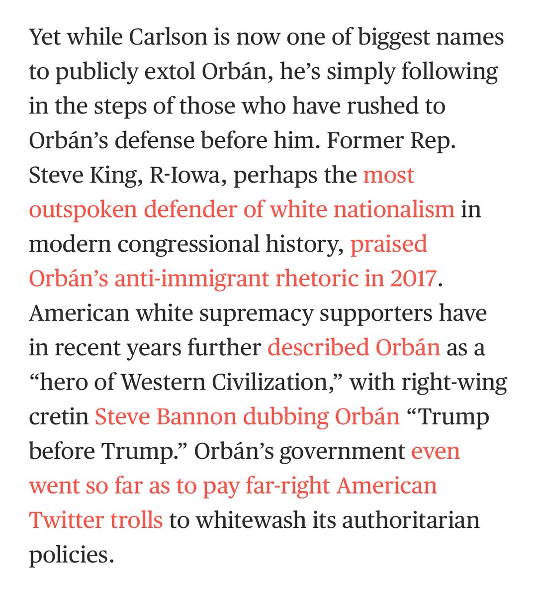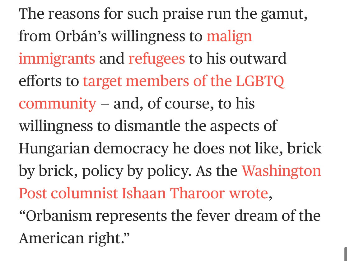 +1 The American “nationalist” right infatuation with Orban was already in full-swing by the mid-2010s. (See: the “alt-right” of the era citing Orban over and over.)
