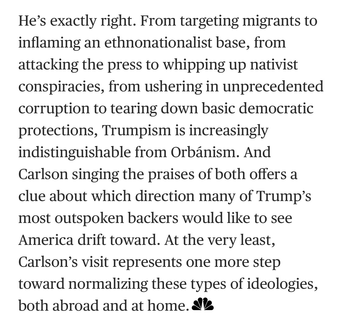 NEW: My read on what Tucker Carlson’s whitewashing of Viktor Orban portends—and why the future of Trumpism lies in Budapest. nbcnews.com/think/amp/ncna…