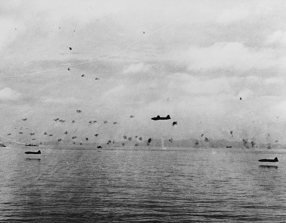 In the meantime, at the major Japanese base of Rabaul, 27 Bettys equipped with torpedoes and escorted by 15 Zeros took off at 08:00 to attack the US carriers covering the operation, as Japanese reconnaissance aircraft already in the air searched in vain for the US carriers.