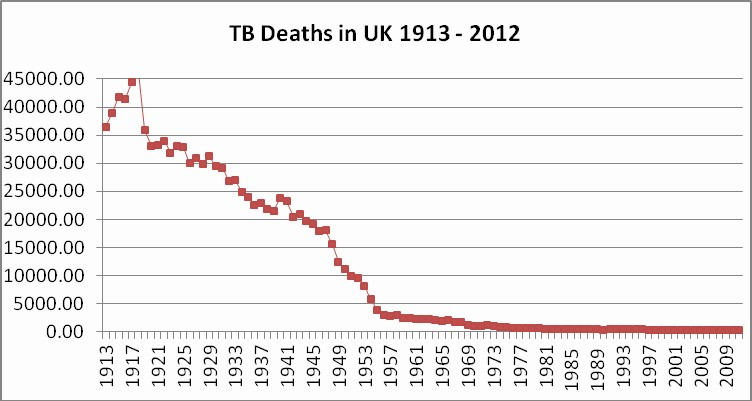 2/ I mean, did we say "let's live alongside TB"? No, we didn't, and the rates were in massive decline long before effective treatment arrived in the late 40s. Why? NPIs.