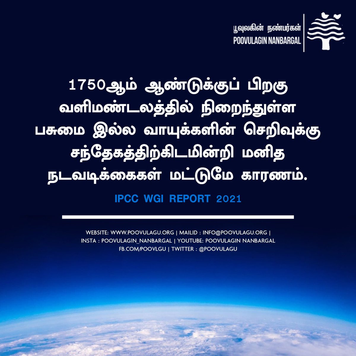 காலத்தில் அமைப்பின் முதல் பணிக்குழுவின் Climate Change 2021: the Physical Science Basis எனப் பெயரிடப்பட்ட இந்த அறிக்கை காலநிலை மாற்றத்தின் பின்னணியில் உள்ள அறிவியல் குறித்தும் மனிதர்களால்தான் காலநிலையில் மாற்றங்கள் உண்டாகின்றன என்பதற்கான ஆதாரங்களையும் தெளிவாக எடுத்துரைக்கிறது.
