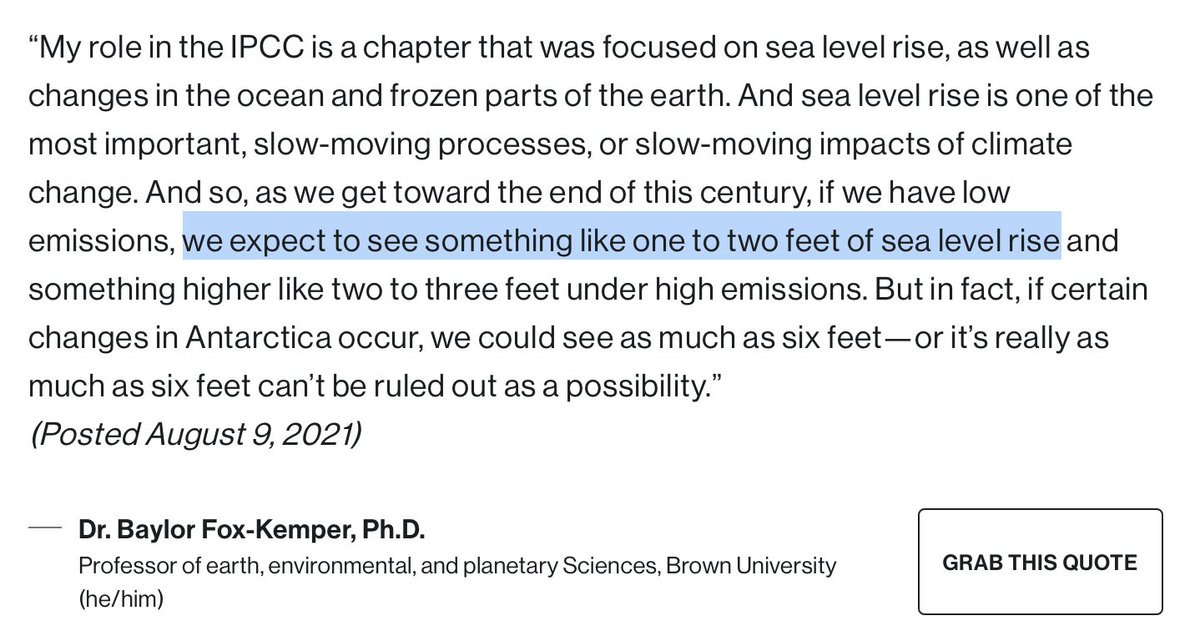 Finally, a quote that is halfway decent. It properly describes climate change as a gradual and long-term problem. As such, it properly contradicts the previous hysterical "now! now! now!" quotes