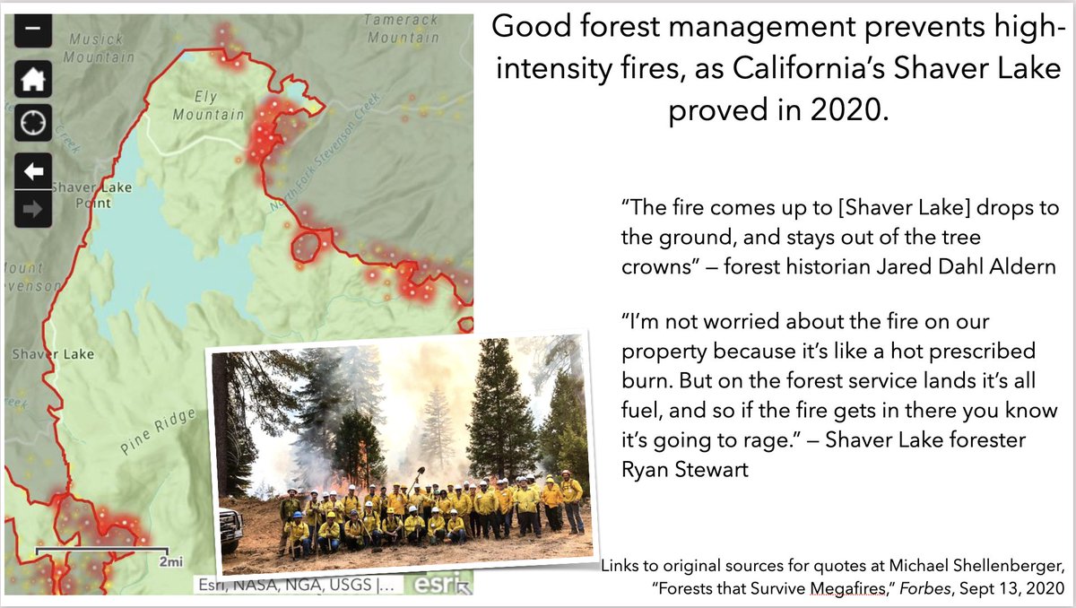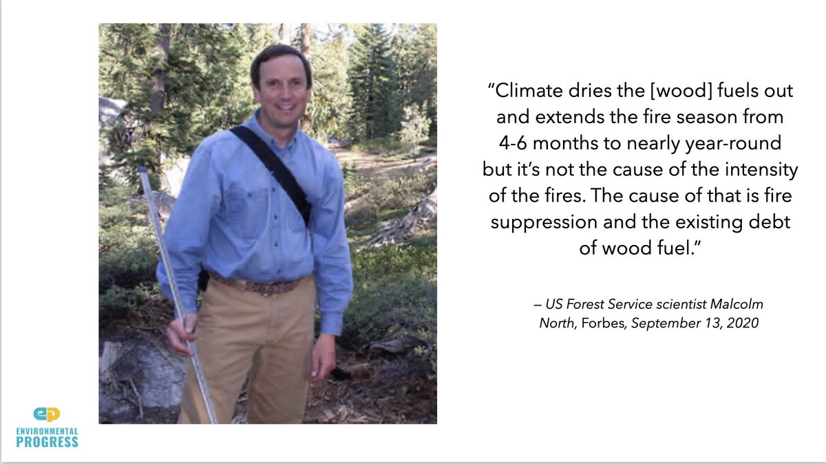 It's inappropriately vague on fires. The biggest factor causing high-intensity forest fires is the build-up of wood fuels. Well-managed forests survive higher temps.