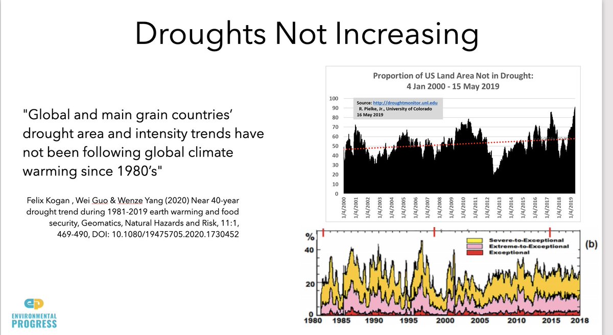 What it doesn't mention is that there's no connection between climate change and droughts in Western US