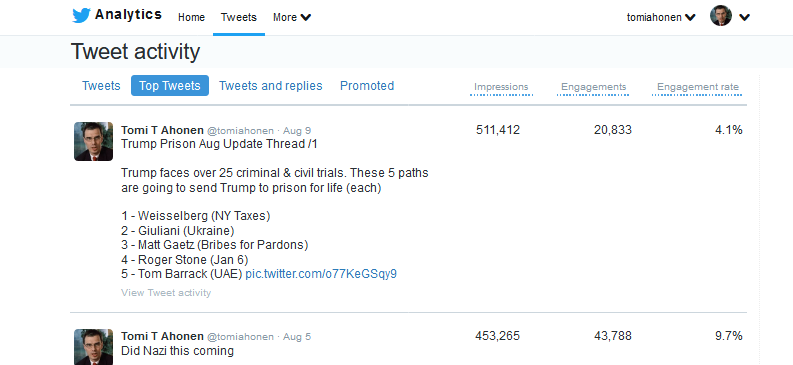 From 2015 to today, I've sent 140,000 Tweets (ave 60 per day). Most of them jokes about Trumpomobsters