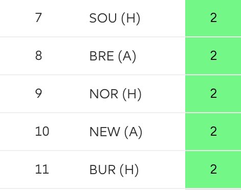 Sancho won’t be ready to start GW 1 so this is definitely one to avoid. He will be a great option when he’s ready though, especially when United have their fantastic run of fixtures from GW 15-27 👇