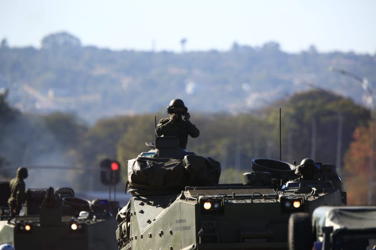Blindados e outros veículos militares da Marinha passaram em frente ao Palácio do Planalto, na manhã desta terça-feira (10), e convidaram o presidente @jairbolsonaro para assistir um exercício militar.