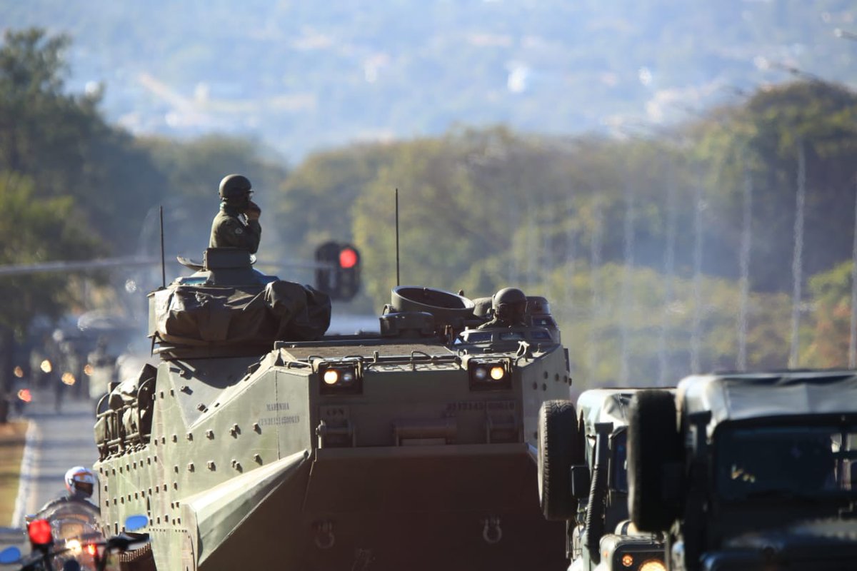 Tanques e carros militares estacionados no batalhão dos fuzileiros navais na L4 norte. O aparato da marinha participará de entrega do convite para o presidente @jairbolsonaro .