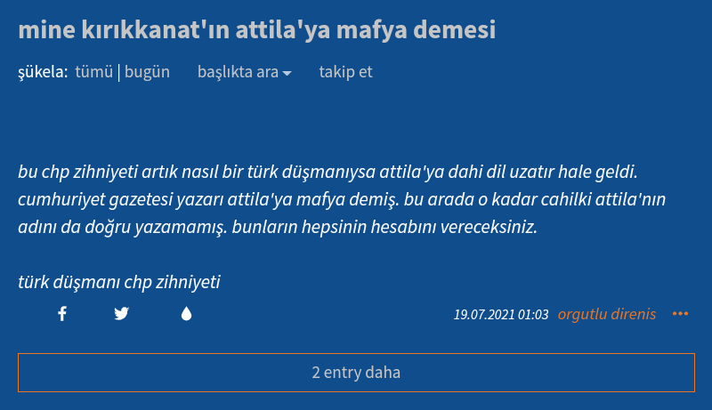 Size bunun gibi yüzlerce örnek verebilirim hepsi elimde arşivlenmiş durumda ama asıl algı çok daha büyük ve tehlikeli. 3. Floodta Ekşisözlük'ün Akparti'li gençleri nasıl tehdit ettiğini ve Akparti'yi nasıl illegal bir terör örgütü ilan ettiğini göstereceğim.
