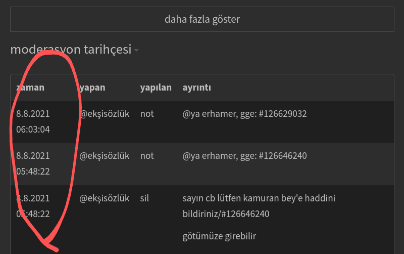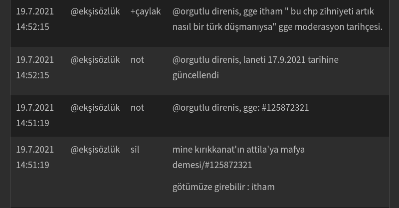 Ekşisözlük entryi sabah saat 06:00'da kimse görmeden yok etmiş. Şimdi bir örnek daha veriyorum. Sözlükte 2013 yılından bu güne moderatör tarafından ısrarla silinmeyen " AKP'nin Türk düşmanlığı" başlığı. Sözlük bunun bir haksız itham olduğunu düşünmüyor. Tam 8 senedir.