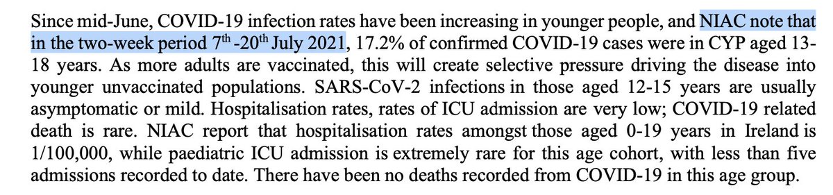 There a seriously misleading error on the HSE advice page about vaccinating 12-15 years olds where is says the hospital risk of Covid is 1 in 100,000. In fact 1% of those cases under 14 to December were hospitalised, 63 in 5-14 are group, 60 in 0 to 4.