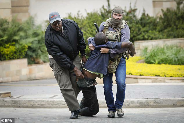 A recent image shows Craighead leading Kenyan security forces towards the luxury DusitD2 hotel in Nairobi in 2019 before storming the complex and defeating al-Shabaab terrorists.