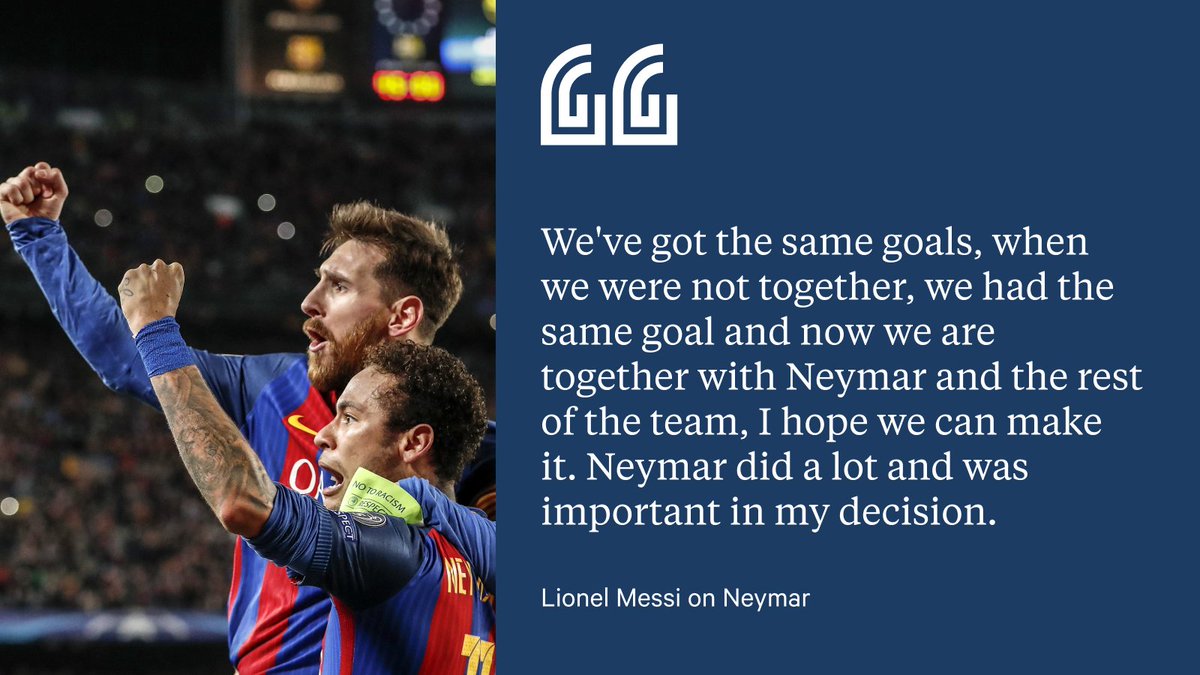 🗣️ Messi on playing with Neymar again: "We've got the same goals, when we were not together, we had the same goal and now we are together with Neymar and the rest of the team, I hope we can make it.