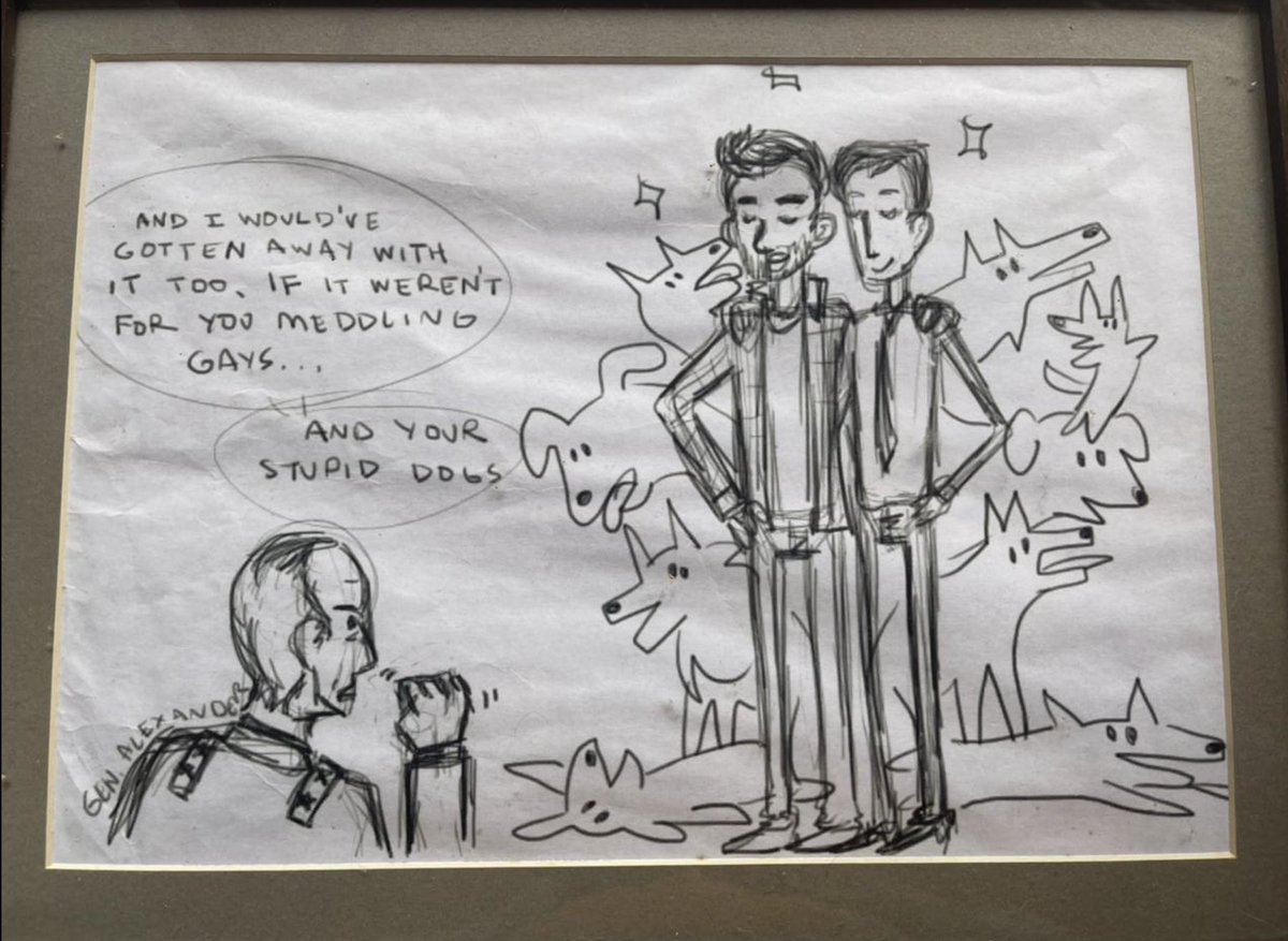 I never shared this before, but since Julian has been in a dungeon for 2 years, never heard from but always demonized: here's a drawing he made for us at our hardest moment of the NSA reporting: after the UK detained David and we couldn't leave Brazil due to Clapper's threats:
