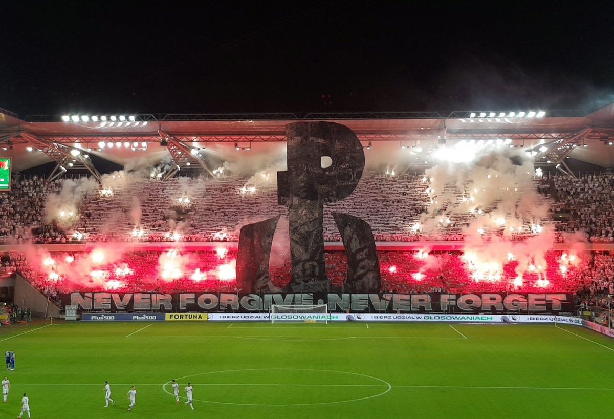 Hoje, a torcida do Legia Varsóvia levou um mosaico ao estádio com os dizeres "Nunca perdoar, nunca esquecer", e uma âncora.